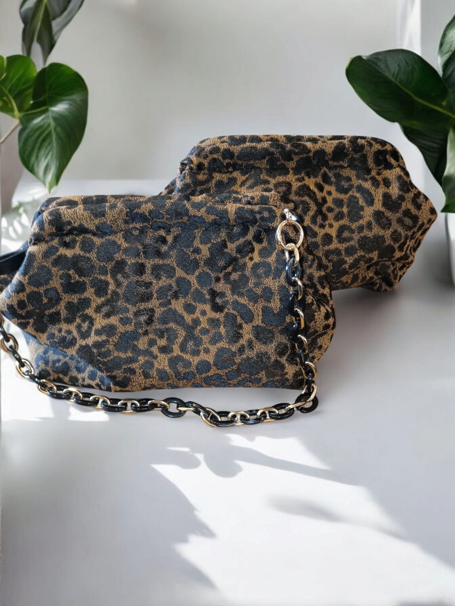 neceser con cierre de boca de lobo montados en diferentes tejidos acolchados Con foan interior y forro posibilidad de elegir telas  al gusto versátil y con cadena interior corbetible en bolso posibilidad de elección de cadena cromada mate color oro color plata mate  etc versátil y cómodo 2 tamaños diferentes también posibilidad