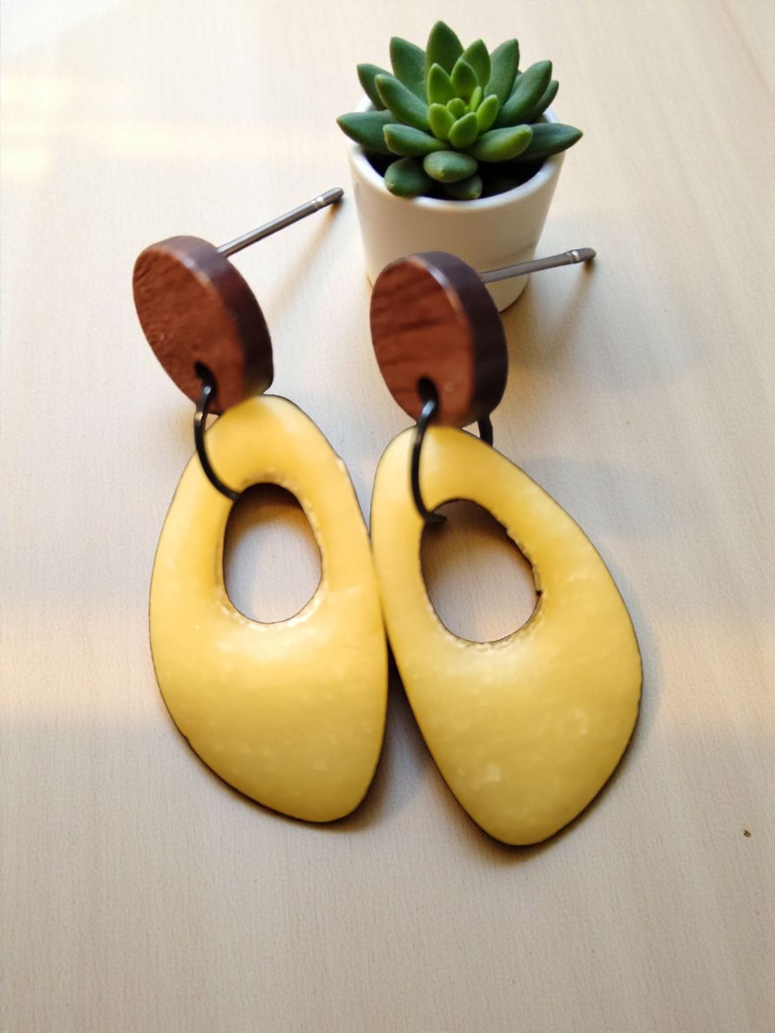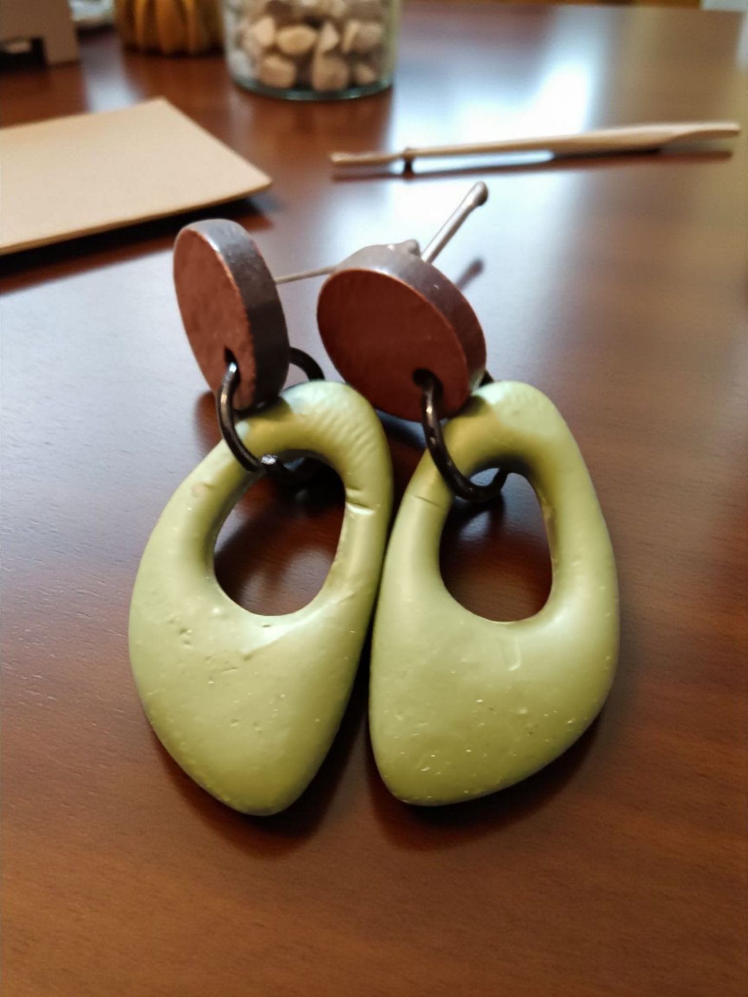 Son pendientes construidos en la acero inox bañados en color oro y con adornos en arcilla polimerica como todos nuestros pendientes son hipoalergenicoss hay de aro grande aro mediano y aro pequeño