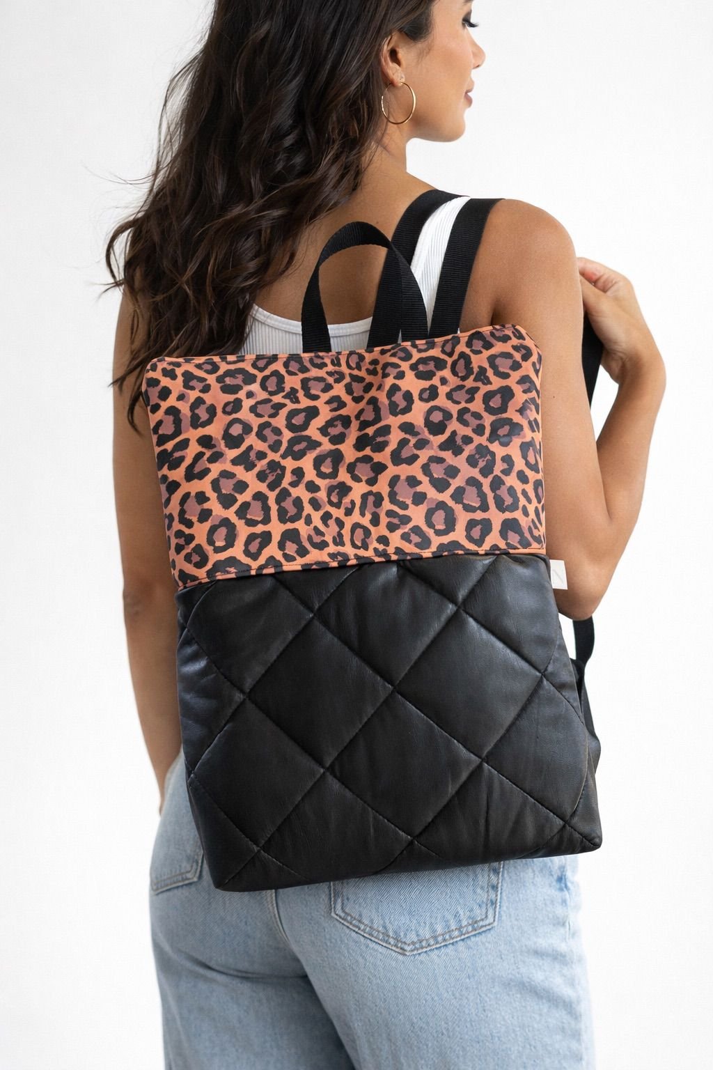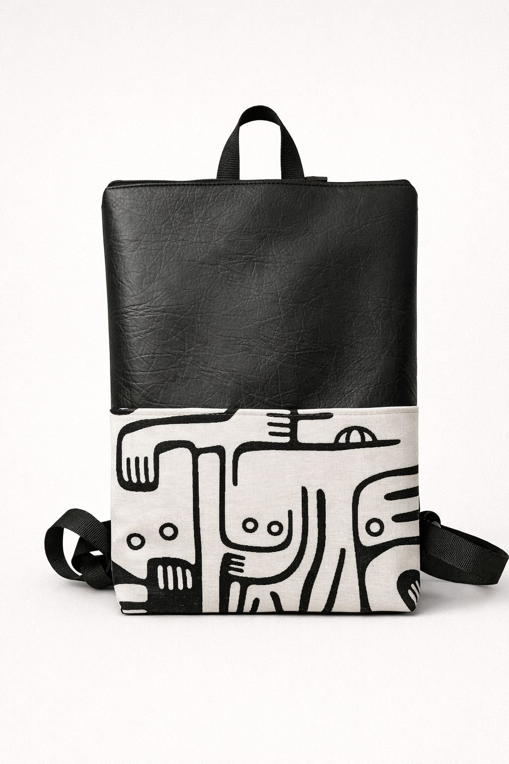 Mochila de Polipiel y estampado de loneta a elegir. Bolsillo trasero con cremallera y bolsillo interior. Todas las mochilas son impermeables.