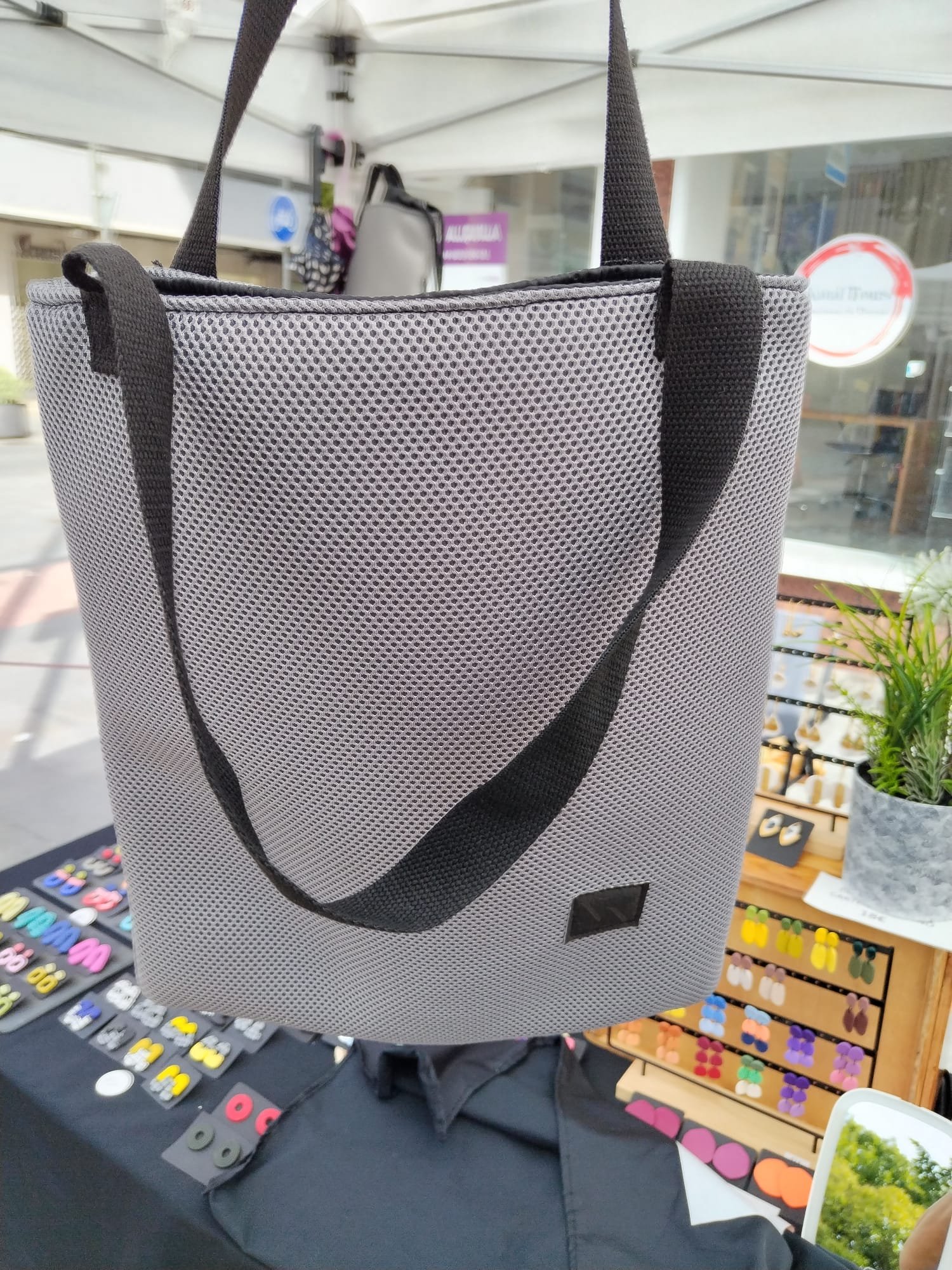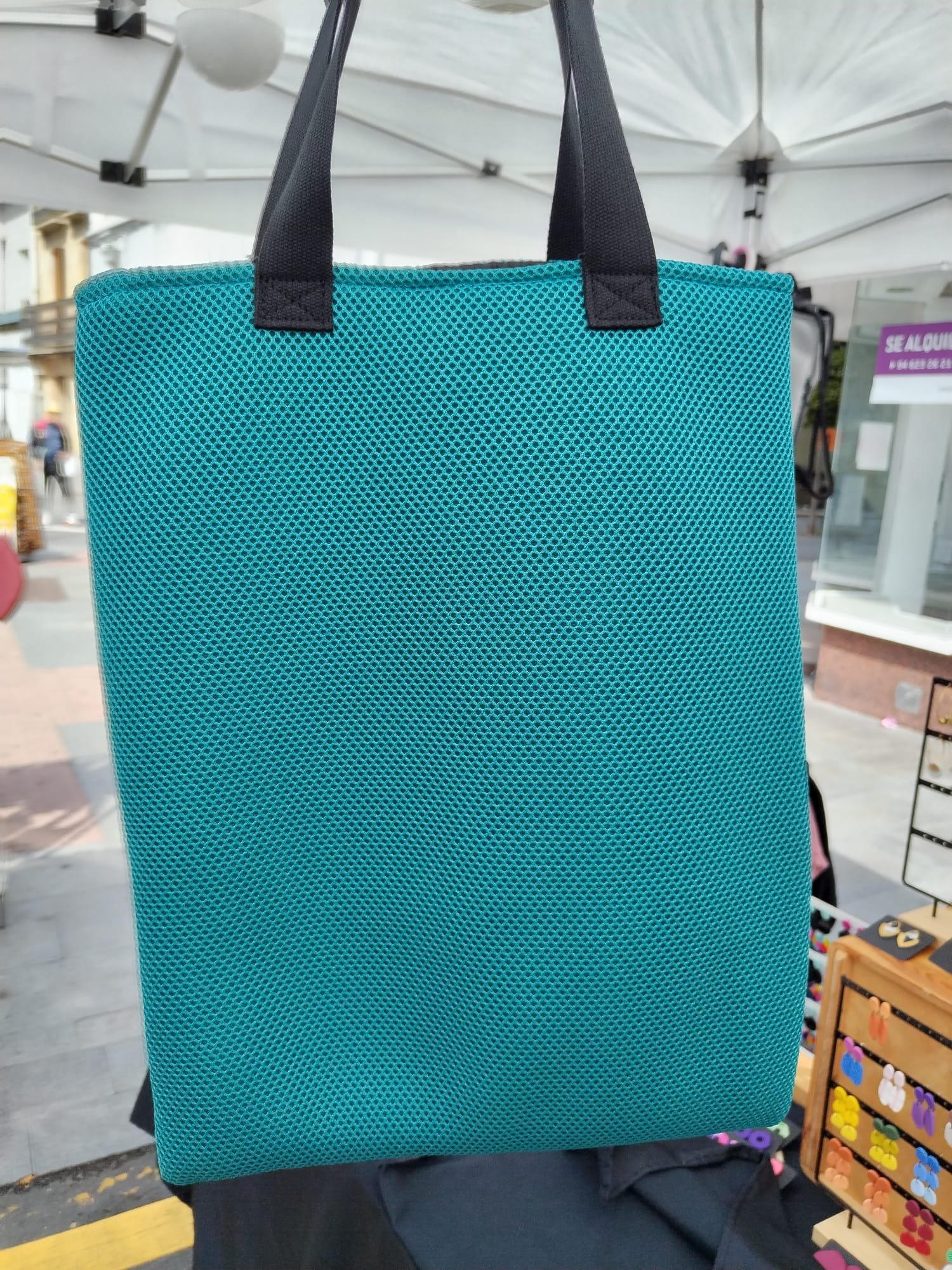 Es una tote bag básica de 35 x 43 aprox rwctaangular planas sun culo con capacidad básicas con un cierre de crisketa de imán central no cremalleras no bolsillos para totes más especiales pedir personalización y presupuesto construidas en tejido 3 d mesh con una amplia gama de colores